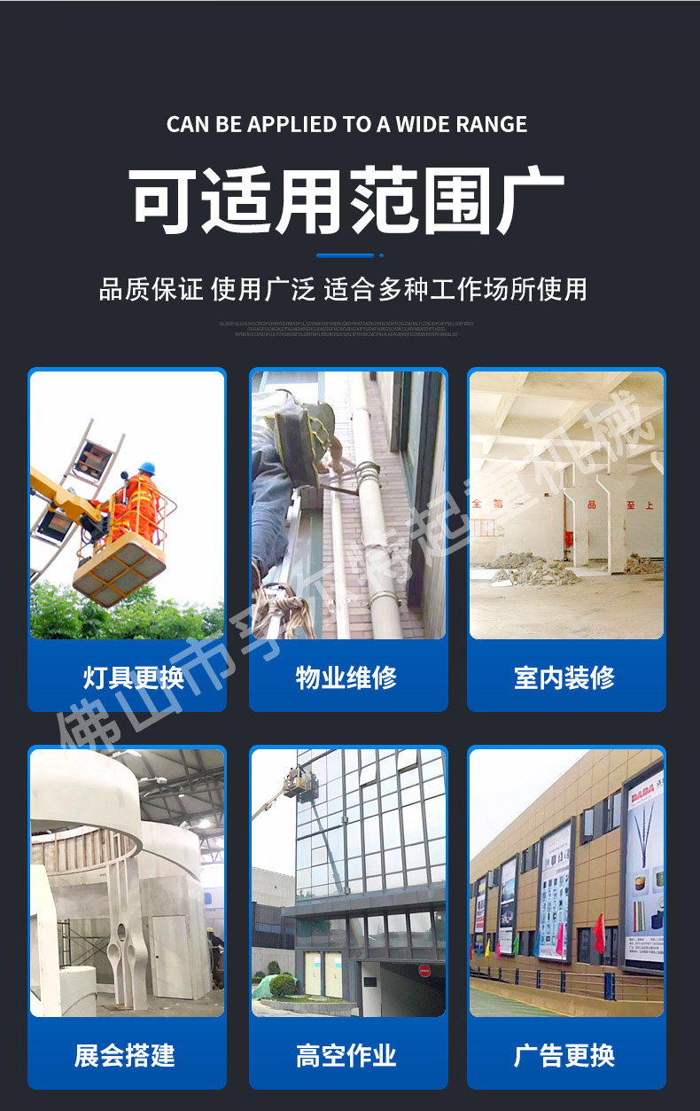 電動液壓升降機自行移(yí)動式小型登高(gāo)車防墜室內全自(zì)動剪叉升降平台